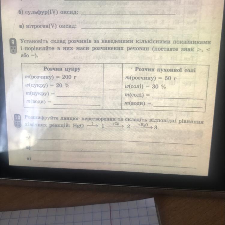 і порівняйте в них маси розчинених речовин (поставте знак >, <