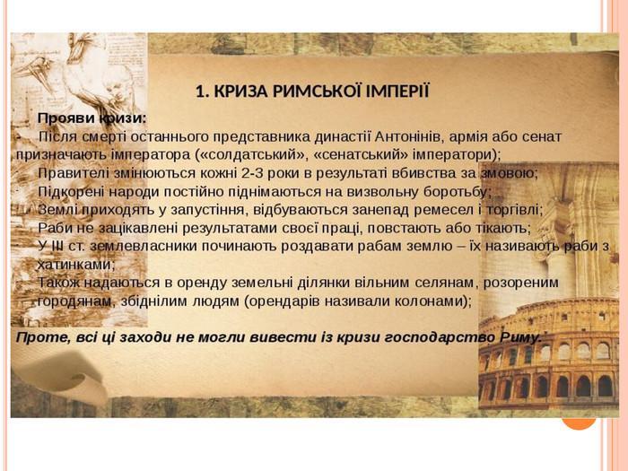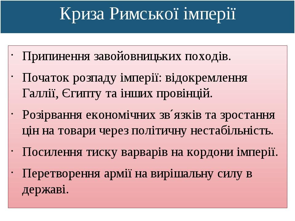 конспект з історії до параграфа „Кризові явища в Римській імперії та її поділ“