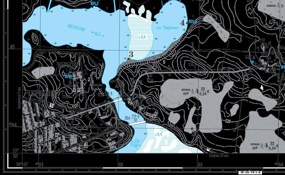Виконайте завдання, скориставшись наведеним фрагментом топографічної карти.