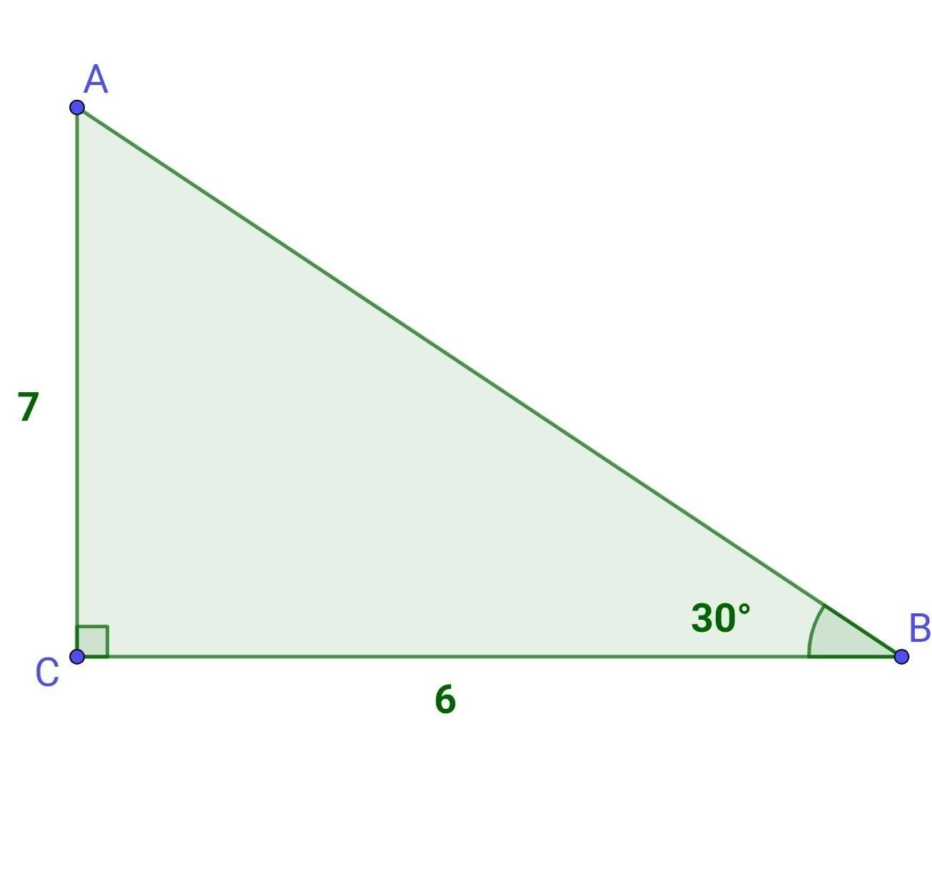 Катет, що лежить проти кута 30 градусів дорівнює 7 см, а другий катет 6 см Обчислити периметр Трикутника