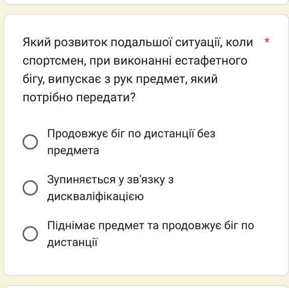 Який розвиток подальшої ситуації, коли спортсмен, при виконанні естафетного бігу, випускає з рук предмет, який потрібно передати?