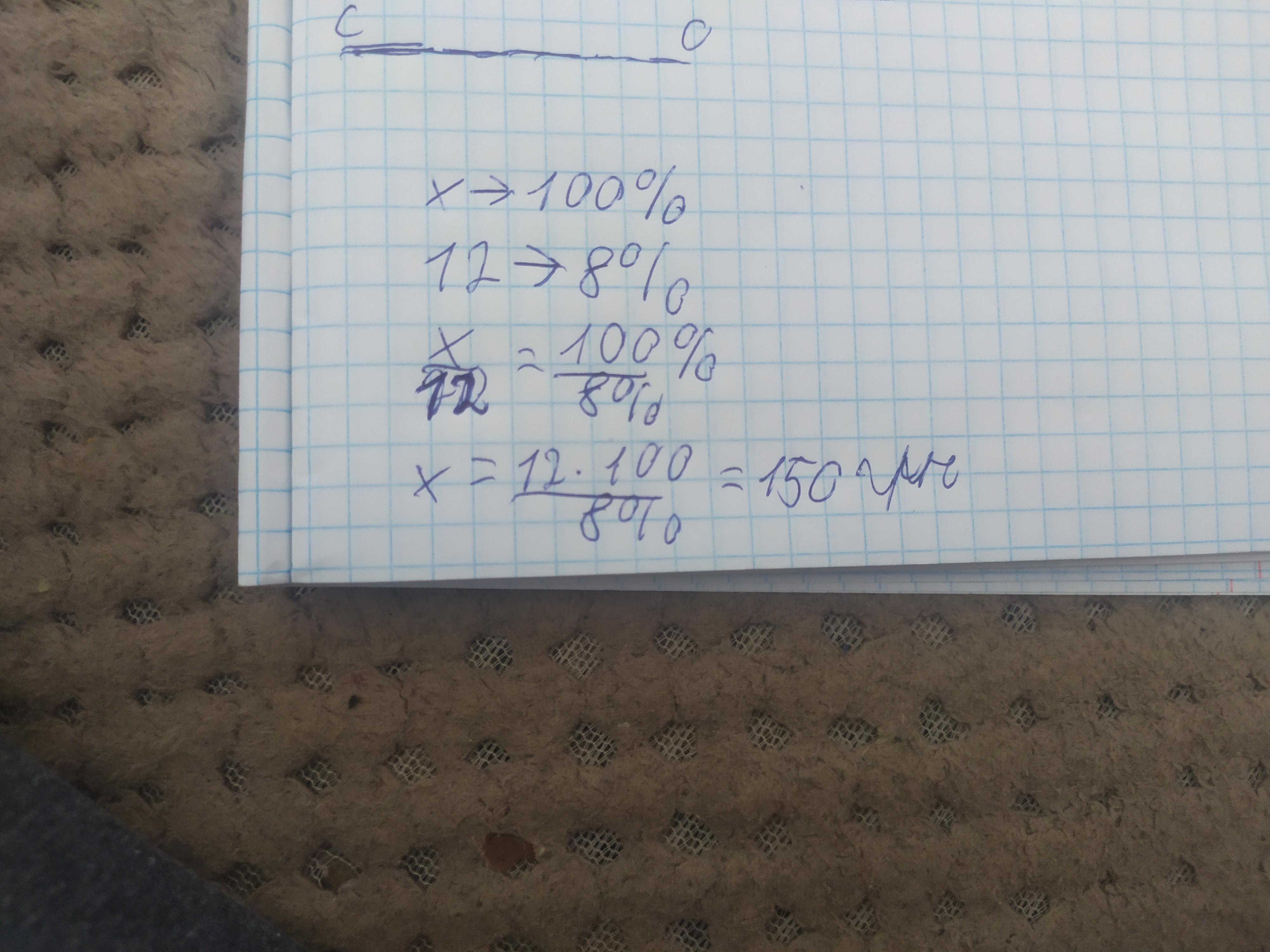 Петрик витратив 52% своїх грошей на покупку нової книжки, 40% грошей - на цукерки, після чого в нього залишилось 12 грн.Скільки грошей було в Петрика спочатку?
