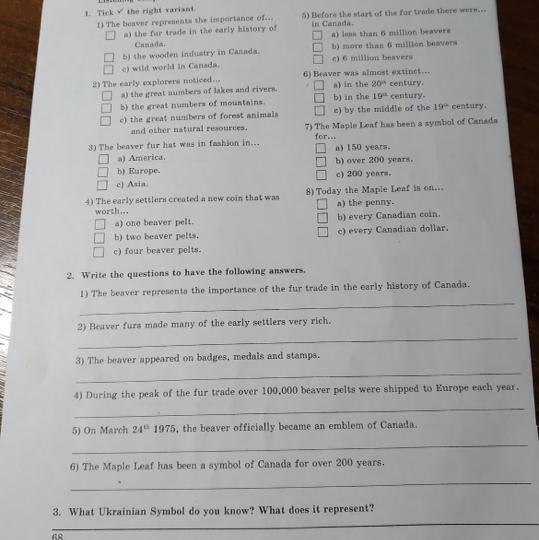 1) What does the beaver represent in the early history of Canada?