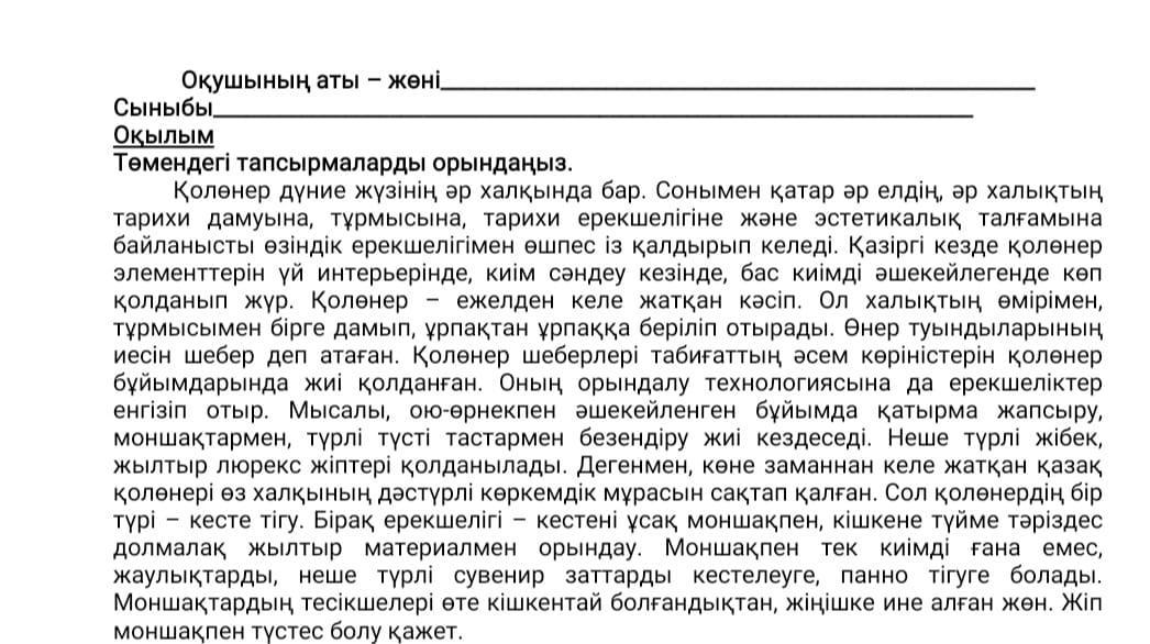 1.Қолөнер ежелден келе жатқан кәсіп пе?