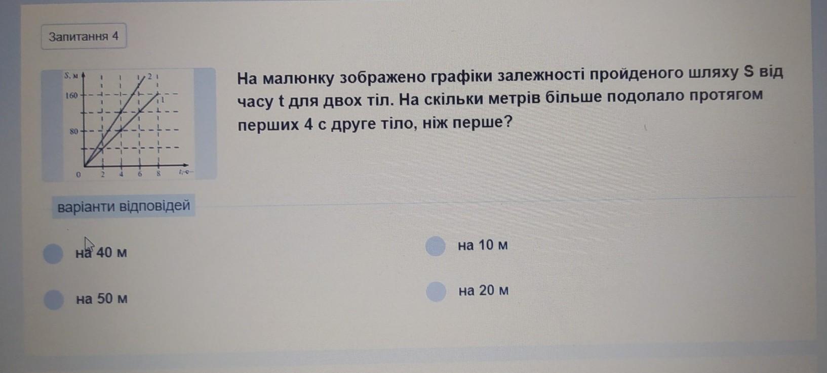 Значит, второе тело преодолело больше чем первое тело на: 120 - 80 = 40 м