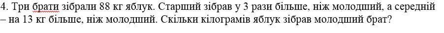 Старший брат зібрав у 3 рази більше, ніж молодший, тому його кількість яблук дорівнює 3x.