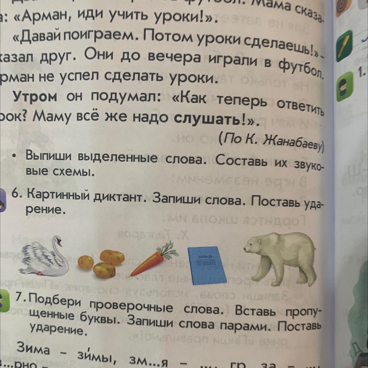 Ответ: лЕбедь, картОфель, моркОвь, тетрАдь, медвЕдь