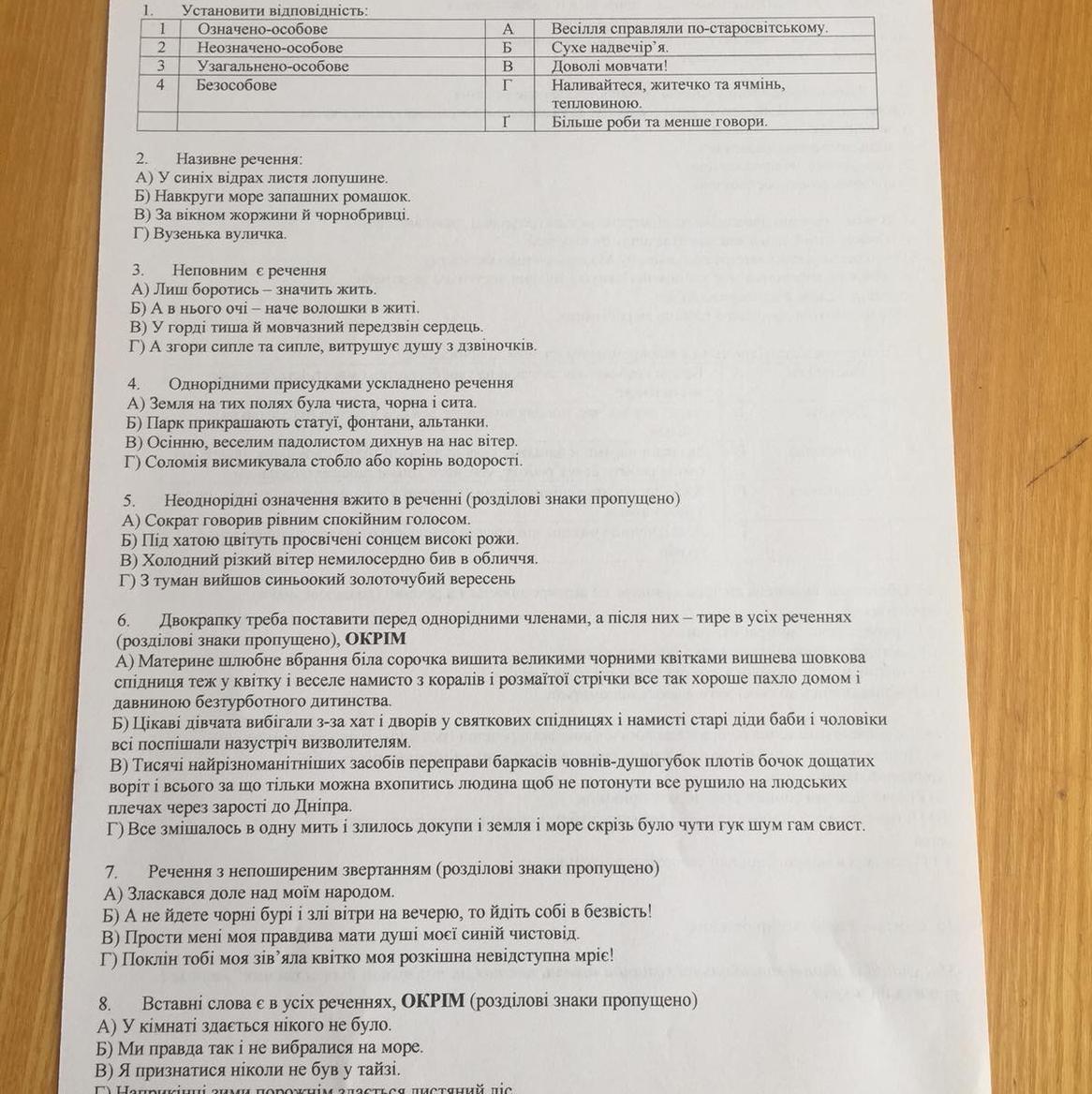 5. Неоднорідні означення вжито в реченні (розділові знаки виправлено):