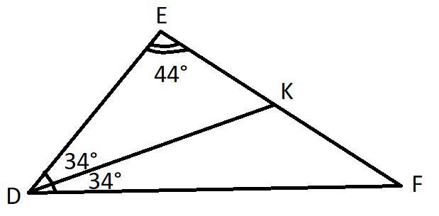 ∠DKF=∠EDK+∠DEK=34°+44°=78° (за властивістю зовнішнього кута трикутника)