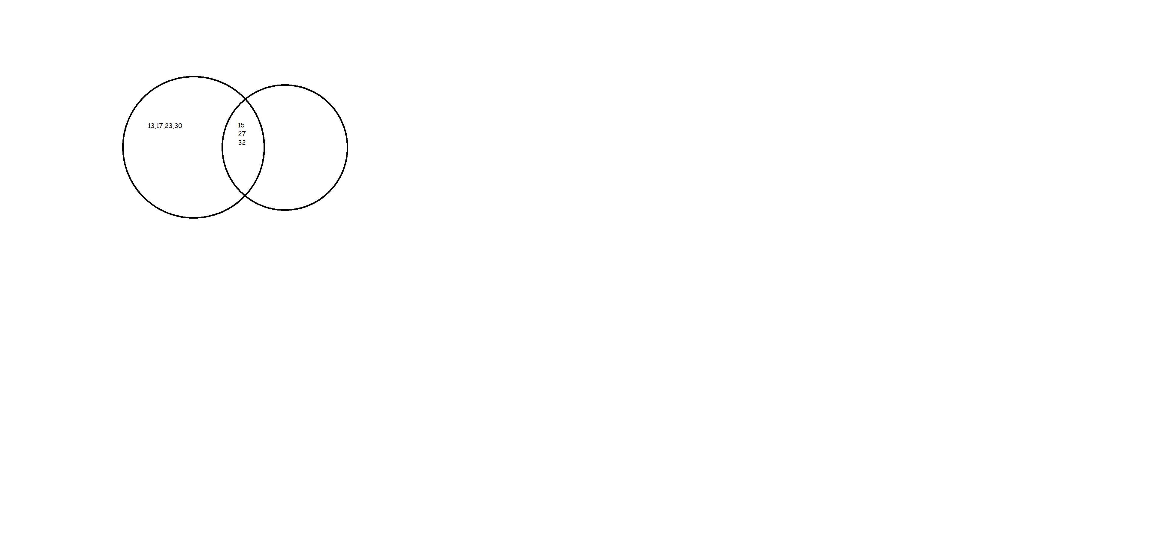 5. Даны множества. А - 13, 15, 17, 23, 27, 30, 32) В-(15, 27, 32). акое множество является подмножеством другого множества? олиши элементы каждого множества. Изобрази при помощи диаграммы Эйлера-Венна, запиши элементы множеств в диаграмму. Сделайте пожалуйста диаграмму