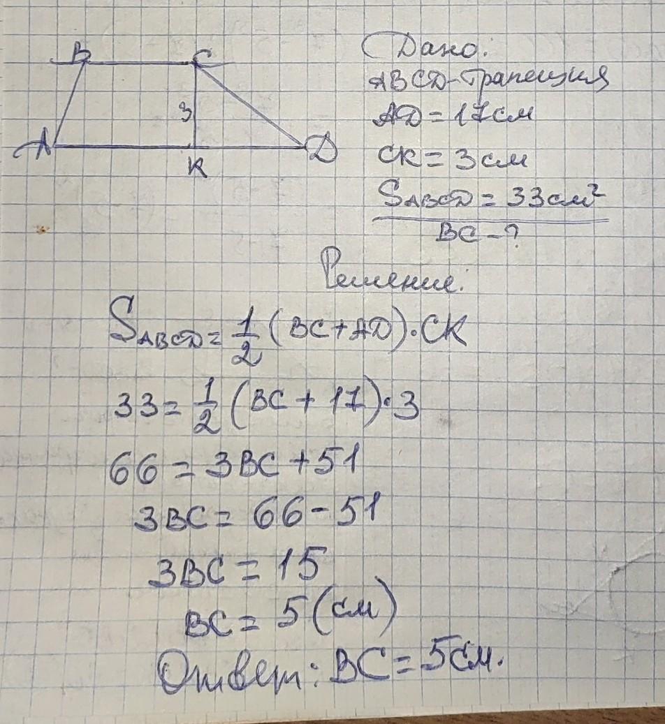 Одна з основ трапеції дорівнює 17 см, а її висота
