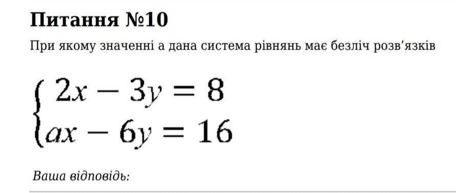 При якому значенні а дана система рівнянь має безліч розв'язків