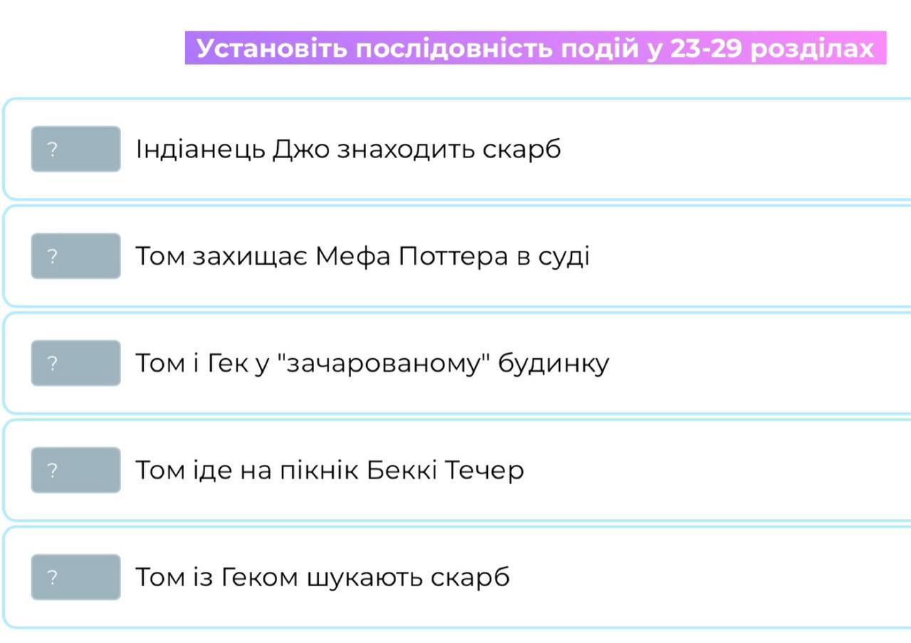 Відповідь:ідуть на пікнік, шукають скарб, знаходять скарб, зачарований будинок,захист у судді