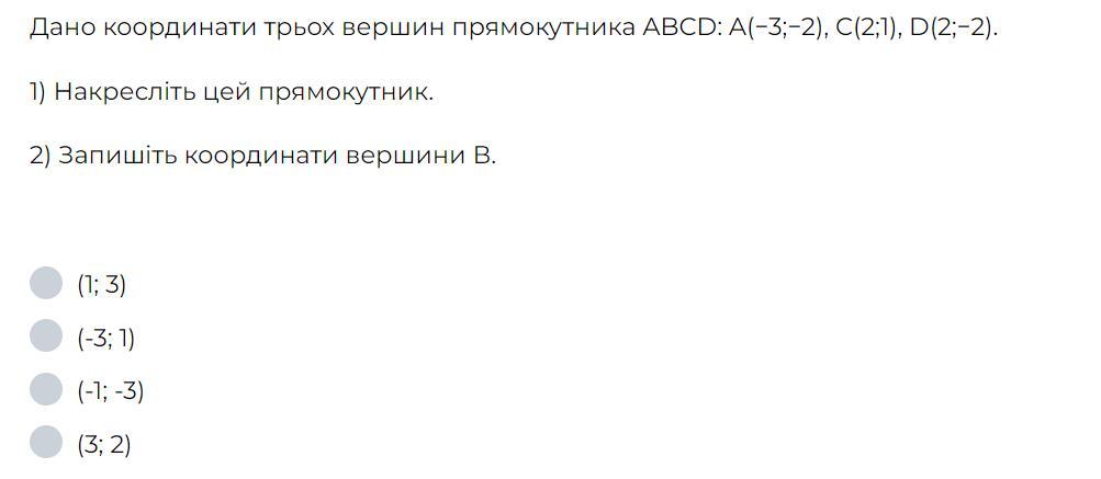 Додавши цей вектор до координат вершини A, отримаємо координати вершини В: