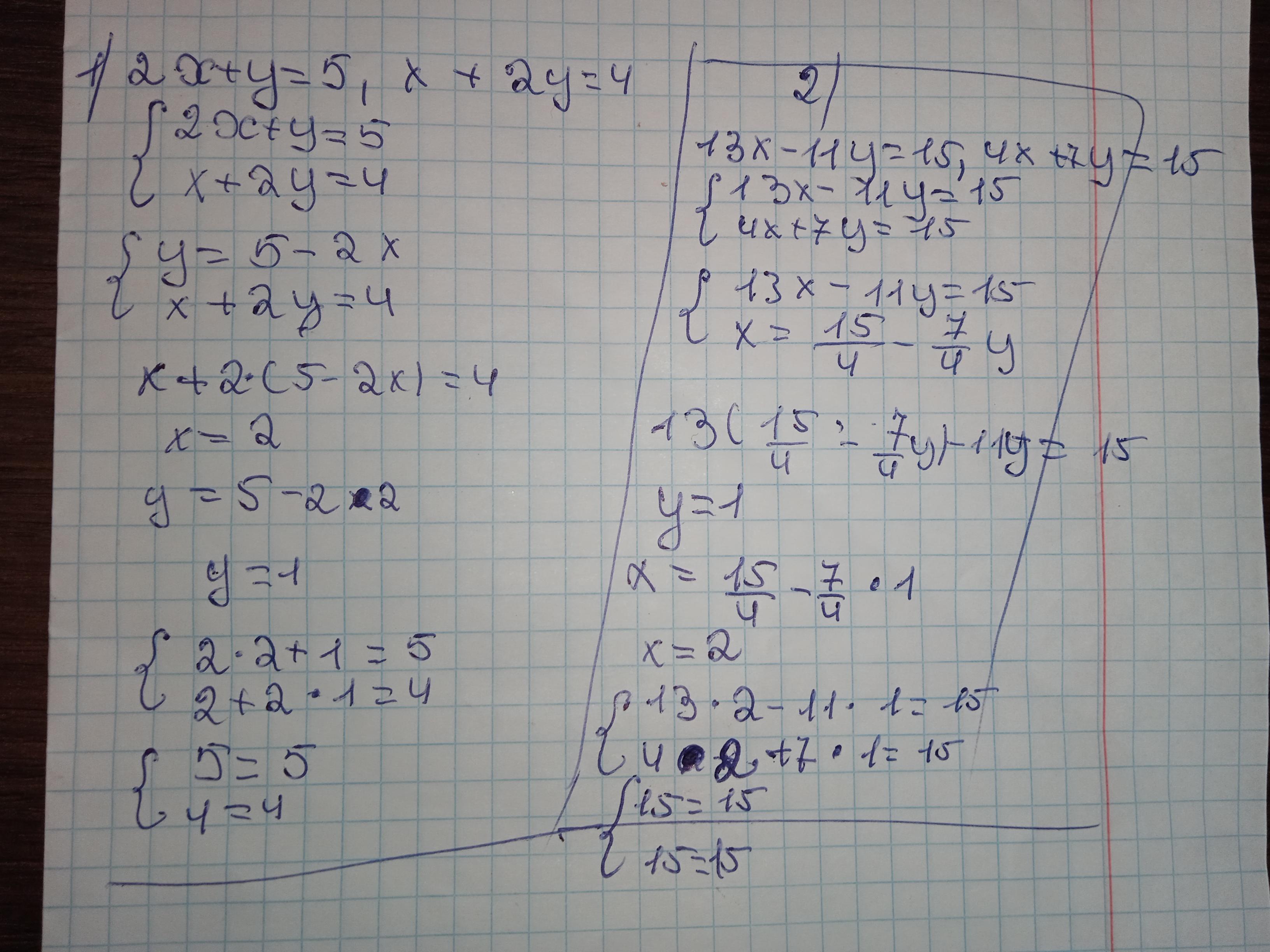 13х-11у=15, 4х+7у=15