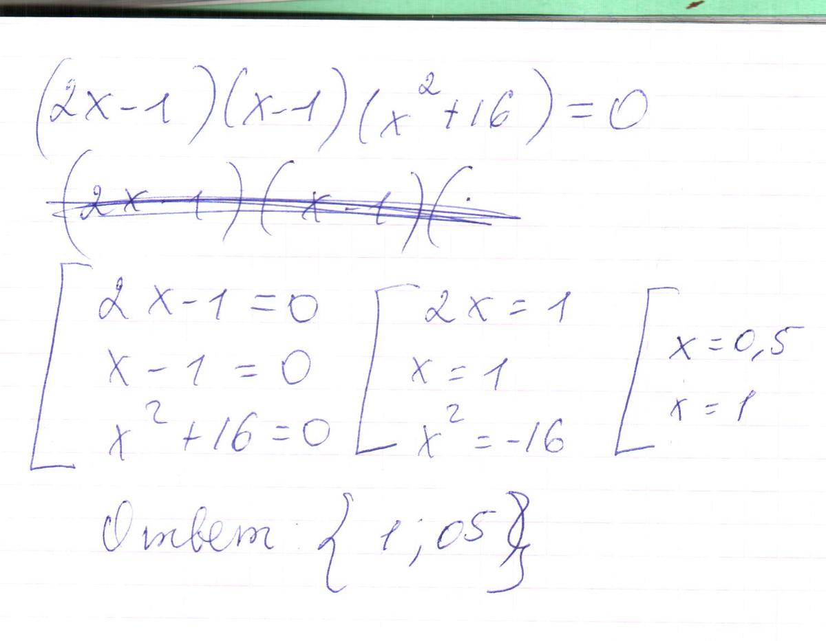 надо знать что 2х-1=0 или х-1=0 или х^2+16=0