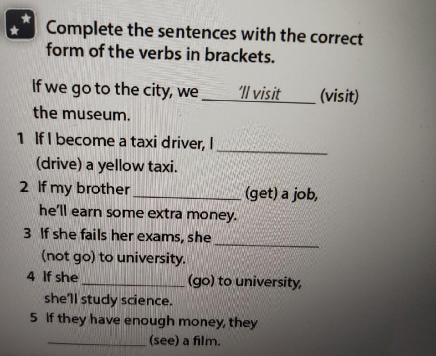 1. If I become taxi driver I’ll drive a yellow taxi.
