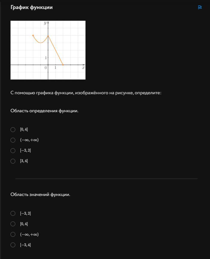 Область определения это какие параметры может принимать x , область значений это параметры y