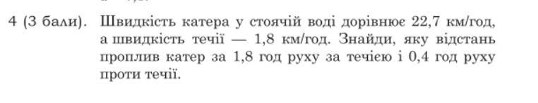 1) 22,7 + 1,8 = 24,5 (км/ч) - скорость по течению