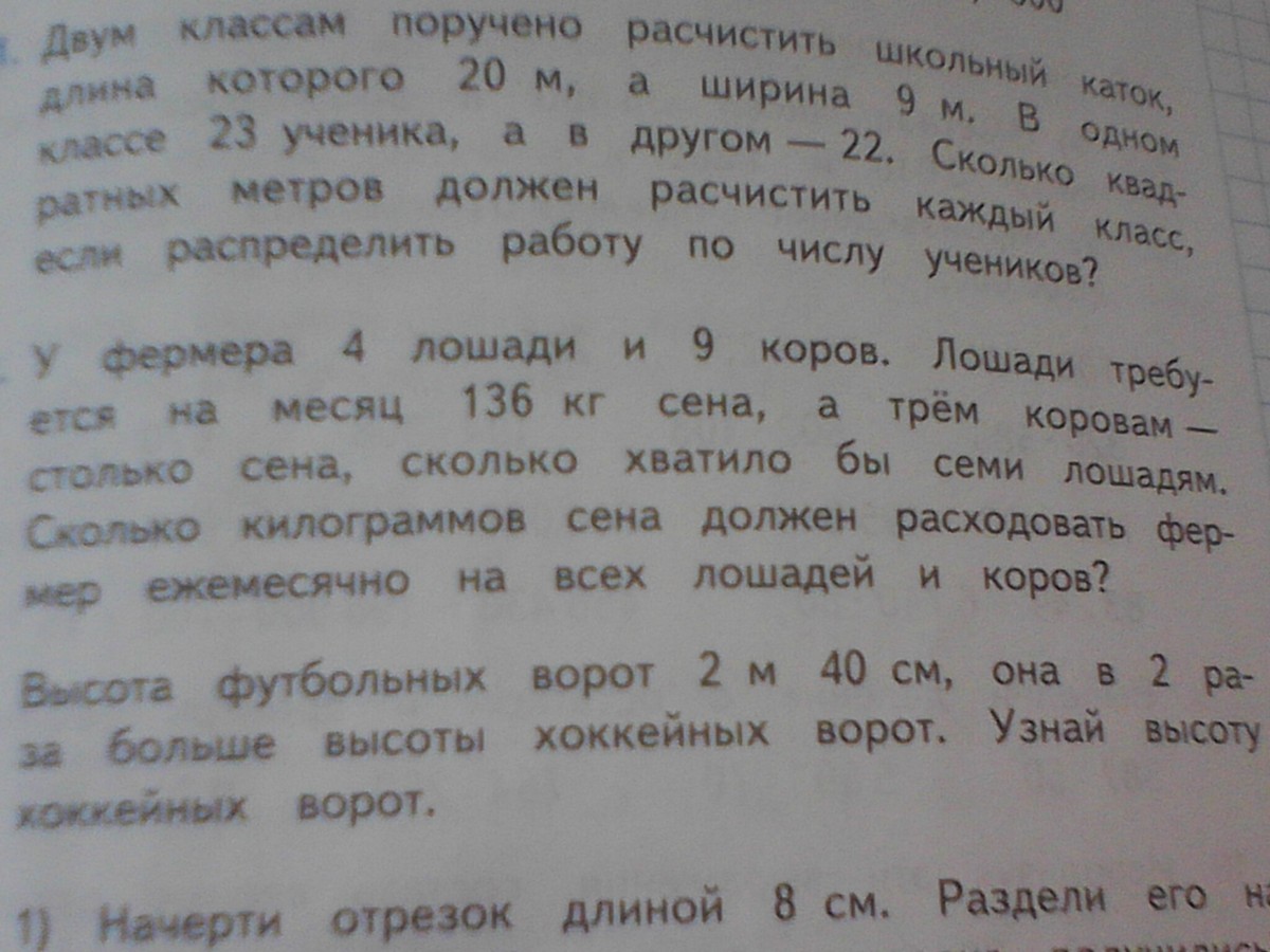 узнаем сколько требуется 3 коровам 136*7=952кг сена требуется на месяц трём коровам .Теперь можно узнать сколько требуется 9 коровам на месяц 952*3=2856 кг сена.И теперь узнаем сколько требуется 4 лошадям за месяц 136*4=544кг сена
