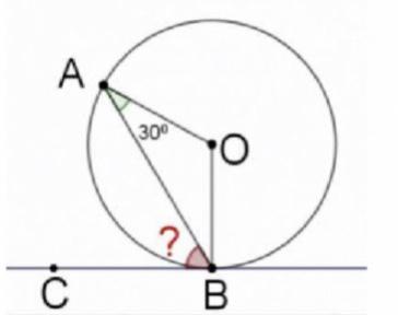 ∠ОАВ=∠ОВА=30°, т.щ. ∆АОВ- рівнобедрений трикутник, кути при основі рівні (АО=ОВ=R)