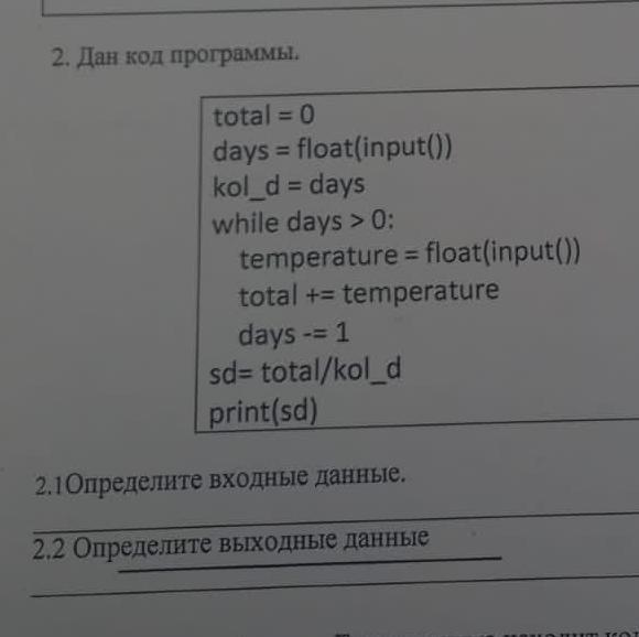 Выходные данные: средняя температура за количество введенных дней.