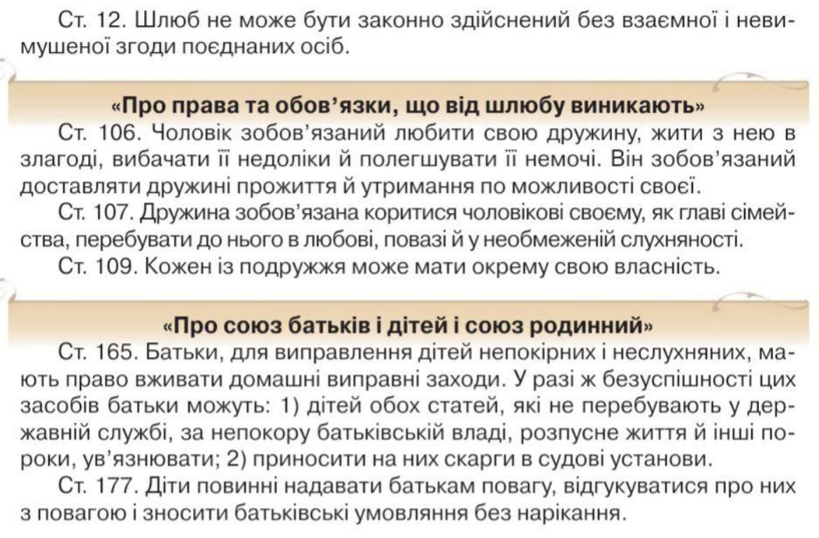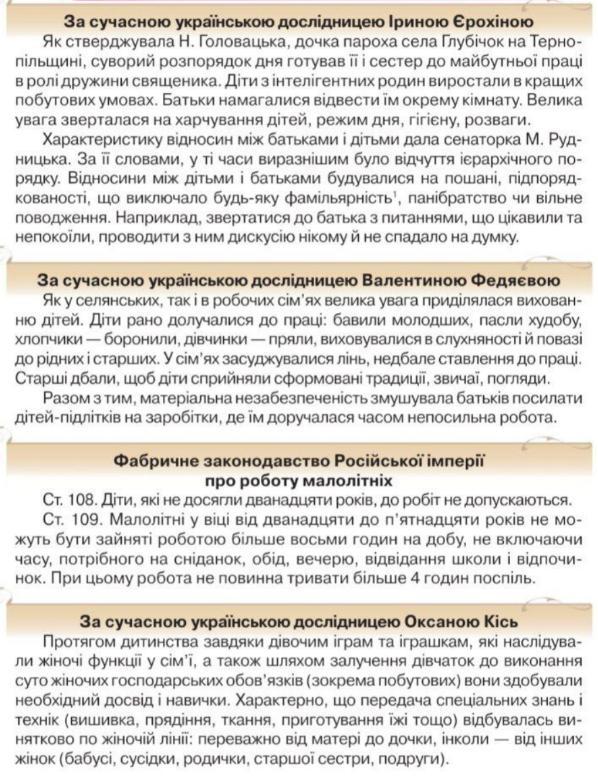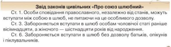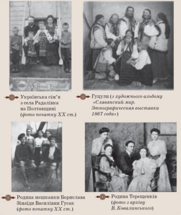 Спираючись на ілюстрації й документи, дайте відповідь на запитання: як змінювалась українська сім'я в кількісному відношенні? Чим відрізнявся склад і побут сімей різних верств населення? Як урегульовувалися законодавчі основи шлюбу? Які відносини були між членами сім'ї? Чи можна назвати їх рівноправними?