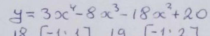 y = 3x⁴ - 8x³ - 18x² + 20 ; xЄ [- 2 ; 1 ] .