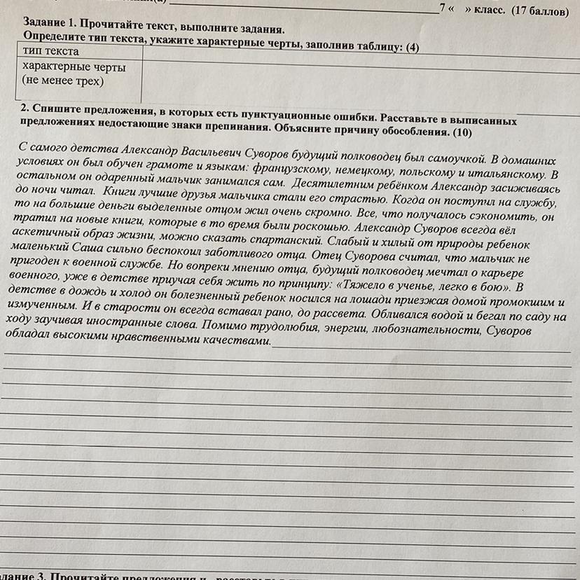 Определите тип текста, укажите характерные черты, заполнив таблицу: (4)