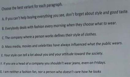 E) Ваш стиль может многое рассказать о вас и вашем отношении к обществу.