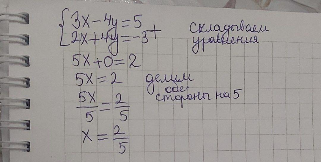 система уравнений, складываем, чтобы избавиться от одной из переменных, в данном случае от y