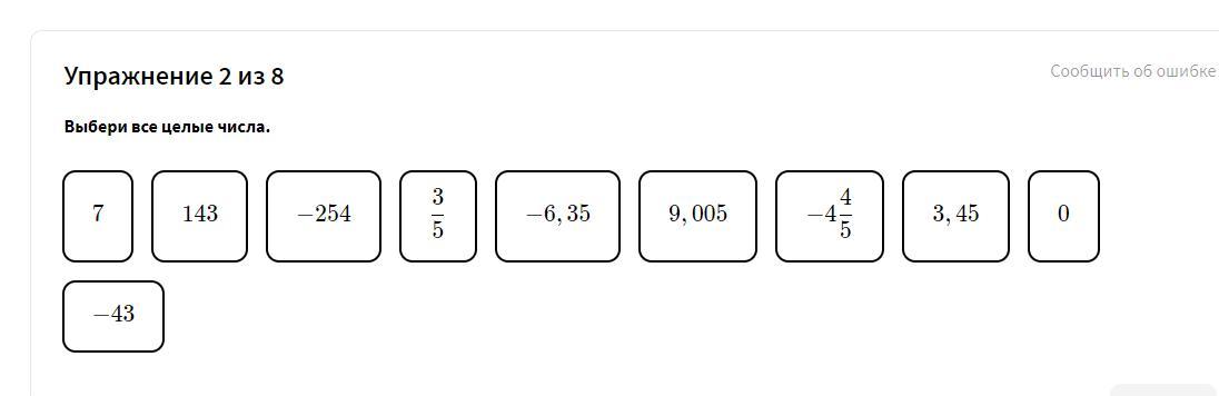 только эти числа являются целыми . потому что остальные дробные или не целые .