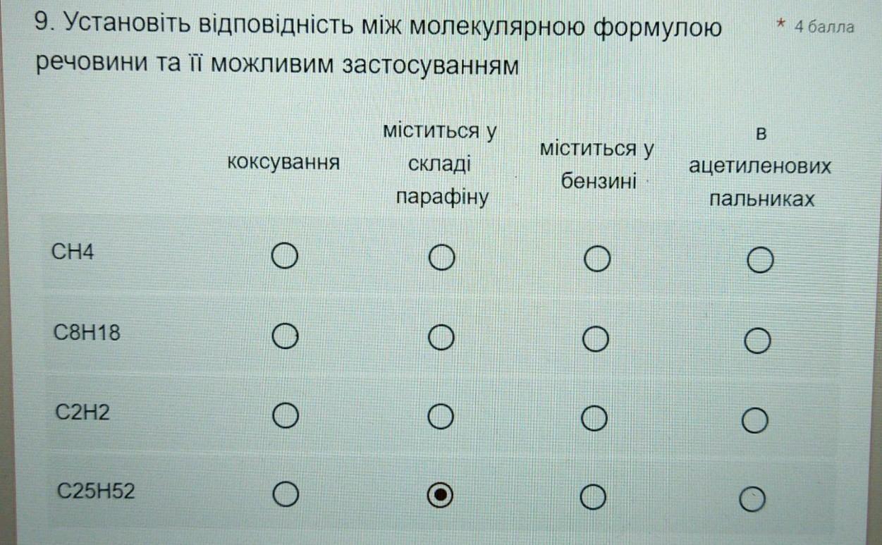 9. Установіть відповідність між молекулярною формулою речовини та її можливим застосуванням