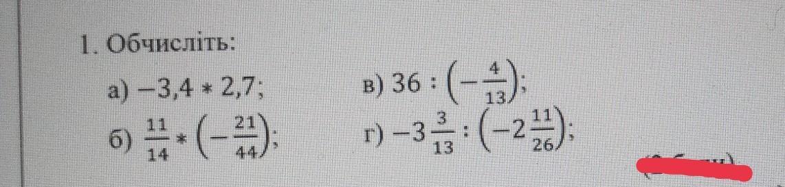 В). 36:(-4/13)= -36:4/13=там сокращаем дроби= -9*13 = -117