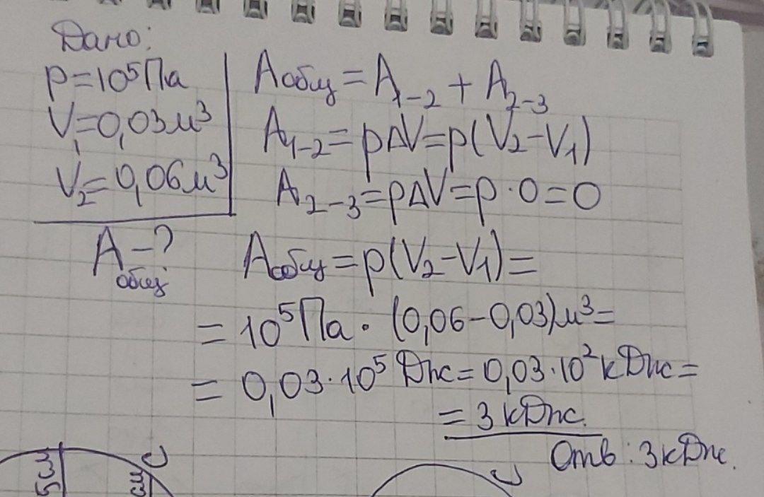 Определи в кДж, какую работу совершает газ при переходе из состояния 1 в состояние 3 .