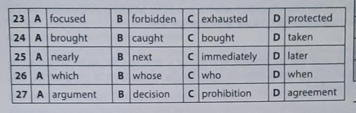 23 forbidden 24 caught 25 immediately 26 which 27 agreement