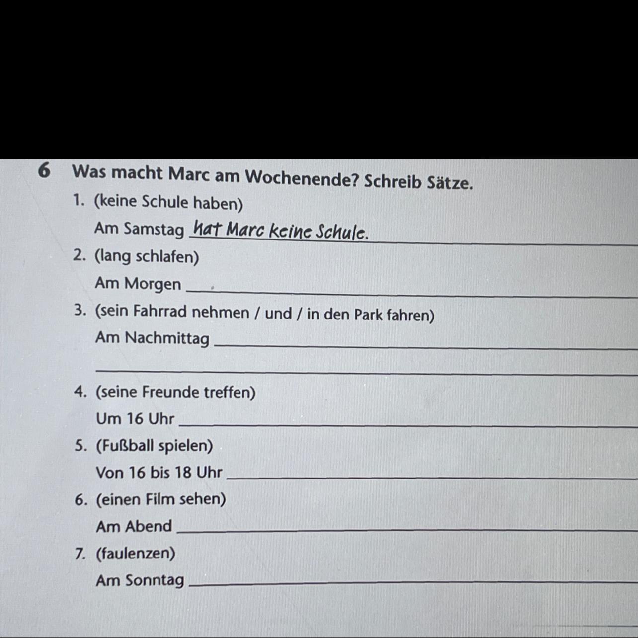 5 Von 16 bis 18 Uhr spielt Marc Fußball .