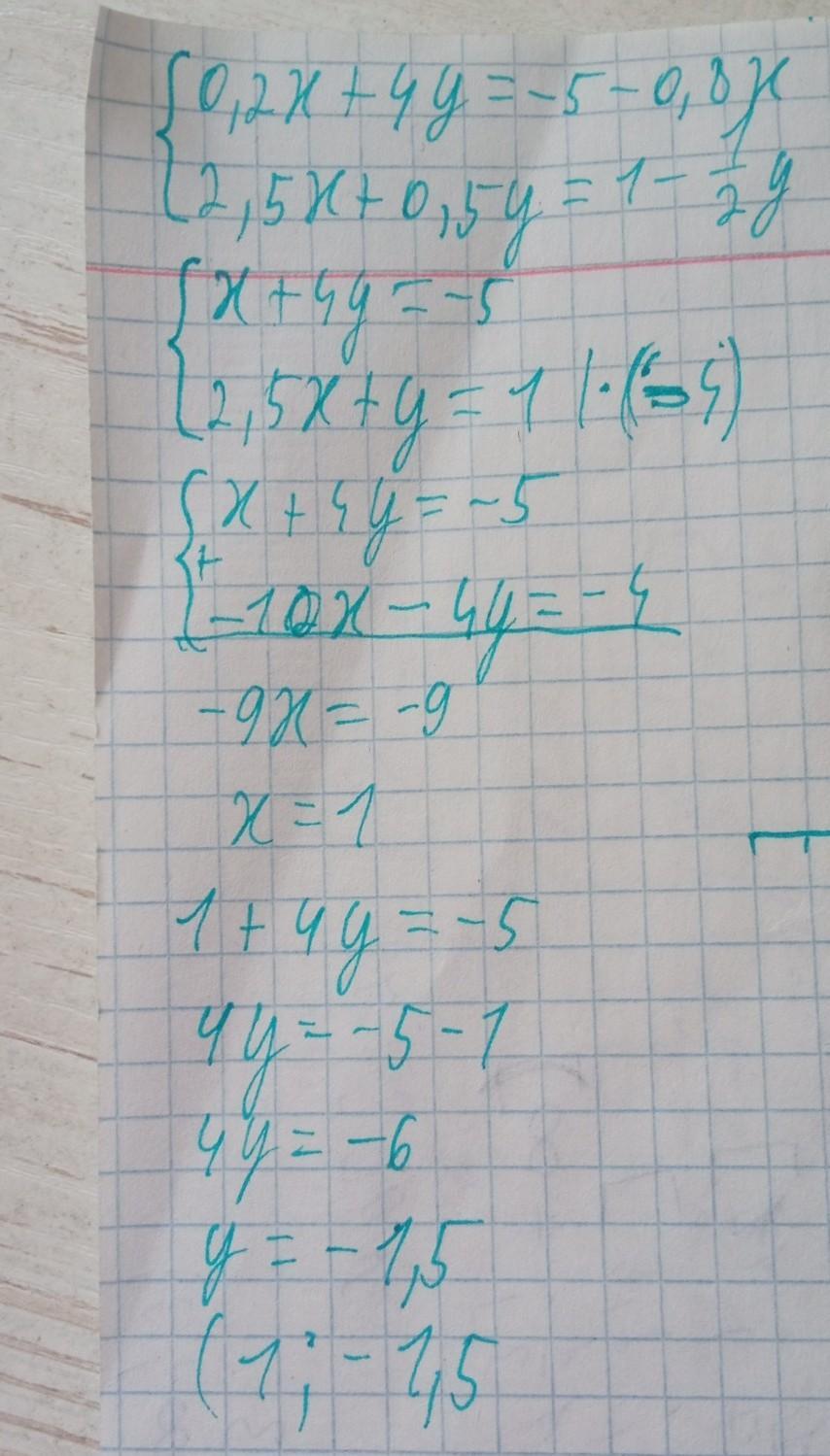Упрости систему уравнений | 0, 2x +4y = -5 -0, 8х 2, 5x + 0,5у = 1 - у = x + x + Решение системы уравнений: у Y - - -5 1