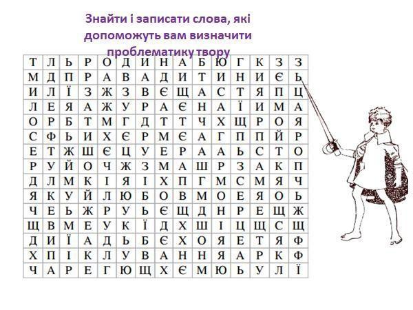 Знайти i записати слова, якi допоможуть вам визначити Проблематику твору