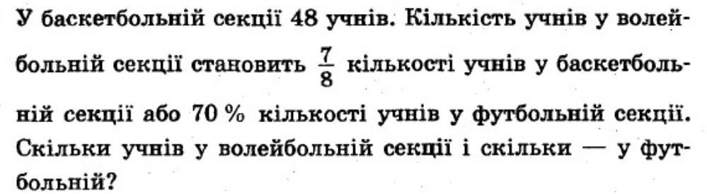 Волейбол.к. - 7/8 від 48 учнів = 0,7х ; 70% = 0.7