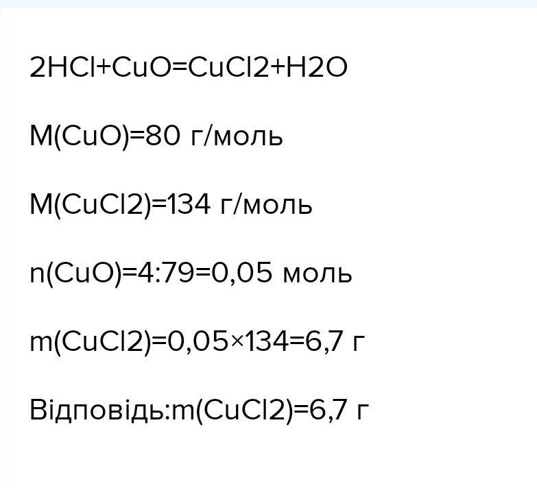 Обчисліть масу солі, яка утвориться в результаті взаємодії розчину хлоридної кислоти з купрум ( II ) гідроксидом масою 4,9г.