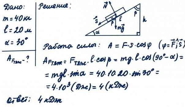 мальчик массой 40кг съехал с горы высотой 20м и длиной 50м и приобрёл скорость 18км/ч. Найти силу трения