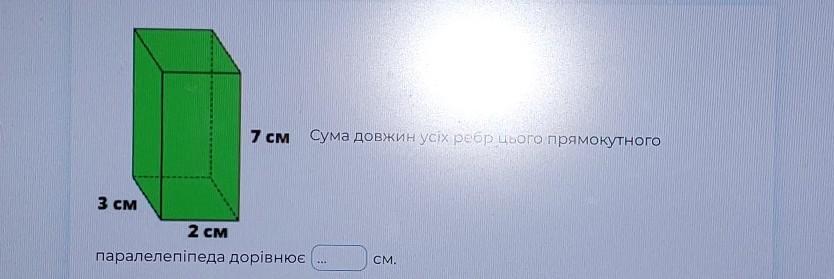 3 см 2 см 7 см паралелепіпеда дорівнює Сума довжин усіх ребр цього прямокутного CM.сросно помогите дабю 78 балов