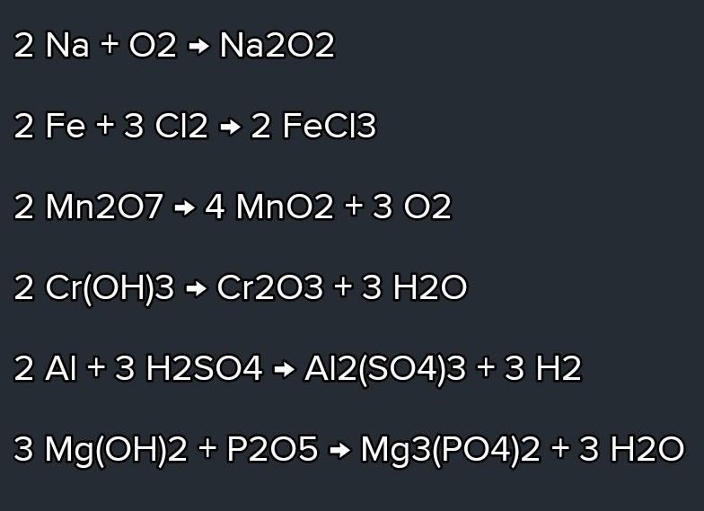Перетворіть на рівняння такі схеми реакцій a) Li +0,→ Li,O; 6) Fe + Cl₂ →FeCl3; B) Mn,O,→ MnO2 + O2; r) Cr(OH),→ Cr₂O3 + H₂O; A) H₂S+O₂→ SO2 + H2O; e) Al + H₂SO, AL (SO4)3 + H₂ 1; e) PO+H₂O→ H,PO⁴.