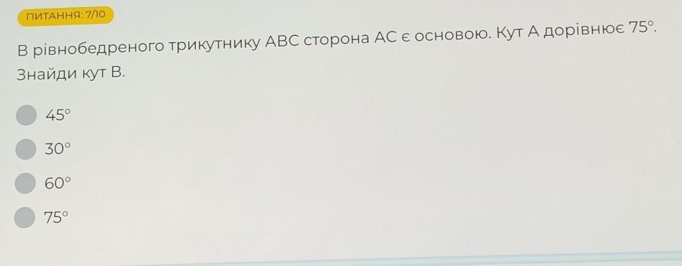 Якщо АС основа кут С відповідно теж 75 градусів. Кут В = 180 - 75 - 75 = 30