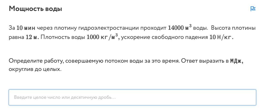 A ? A=P*h=p*V*g*h=1000*14000*10*12=1680 MДж