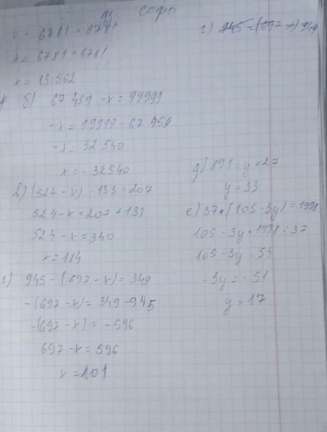 г) 945 - (697 - х) = 349;