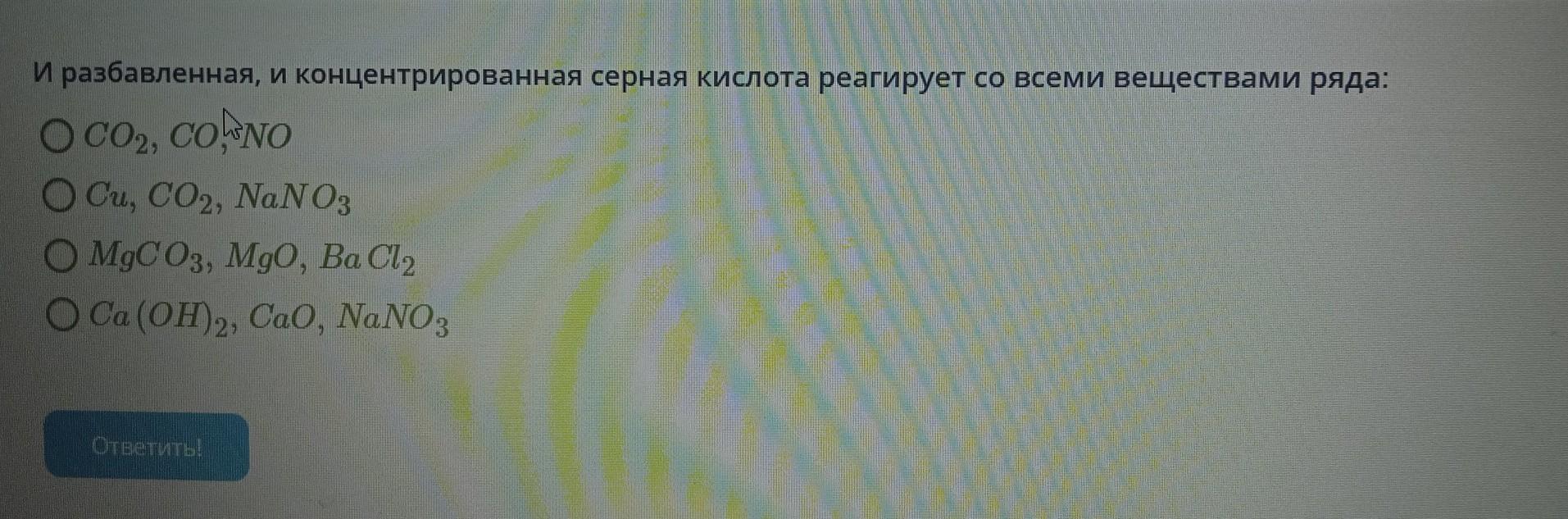 и разбавленная, и концентрированная серная кислота реагирует со всеми веществами ряда