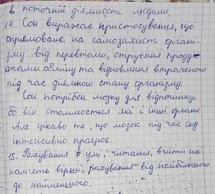 14. Доведіть, що сон – це пристосування організму, яке захищає мозок людини від перевтомлення.