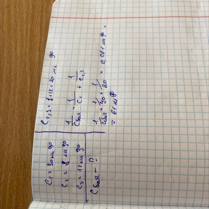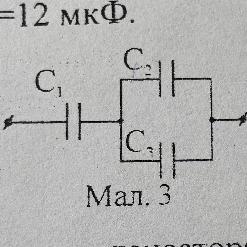 Визначити загальну ємність трьох конденсаторів, зʼєднаних за схемою,